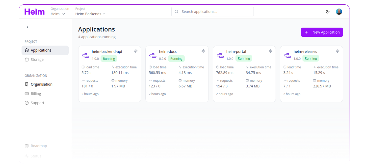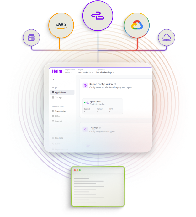 Heim scales your cloud applications effortlessly with dynamic scaling and load balancing. Automatically adjusting resources based on demand, it ensures optimal performance and high availability, future proofing your business for growth without major code rewrites.