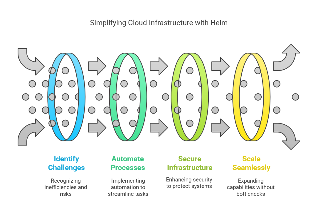 As digital applications become more interconnected, traditional infrastructure fails to keep up, leading to operational inefficiencies and security vulnerabilities. In distributed systems, where applications run across multiple locations instead of a single server, these challenges grow even more complex. Heim eliminates manual overhead and optimizes performance, ensuring scalability, security, and automation at every layer.